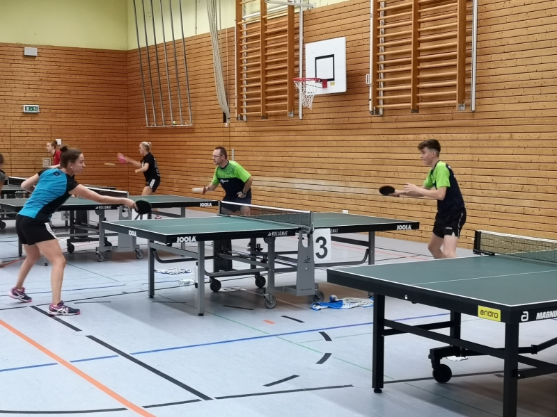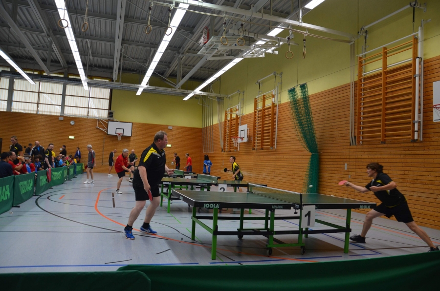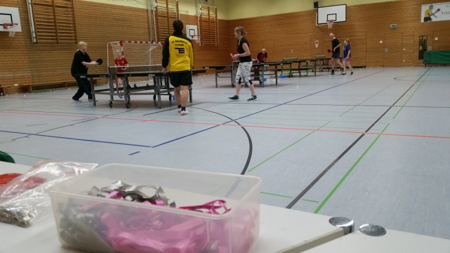 An jedem Tisch gab es ein kleines Handicap, wie z.B. Schläger mit Loch.