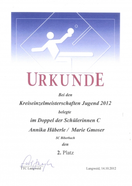 Doppel (Damen, C): 2. Platz: Karin Wiedholz / Katharina Beck (PSV Königsbrunn)