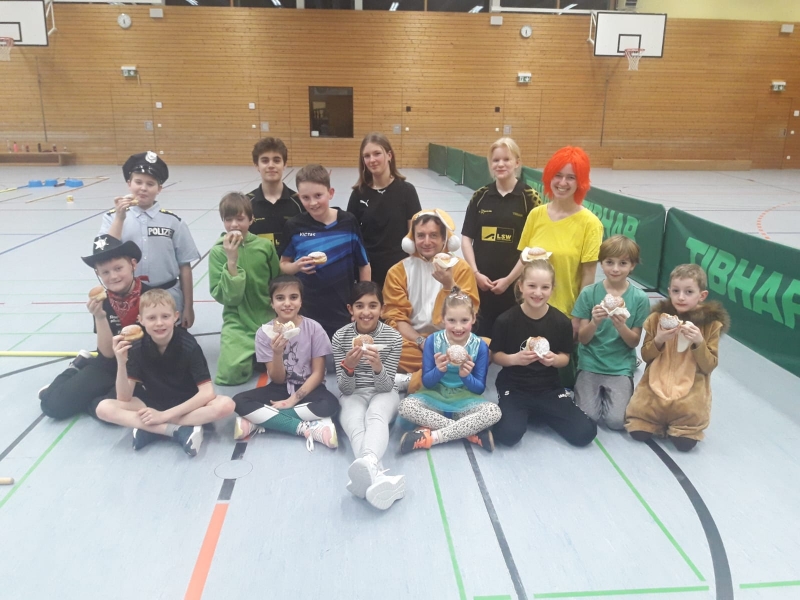 (MJG) Helau! Auf die Kinder und Jugendlichen der Tischtennisabteilung des SC Biberbach wartete am Rosenmontag ein besonderes Training. Das Trainerteam rund um die Jugendleiter Max Merktle und Marie Gmoser organisierte für alle – wie es sich zu Fasching gehört – leckere Krapfen, die es sich an den acht Stationen des Hockey-Golf-Parcours zu verdienen galt.