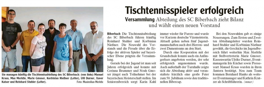 Die seit einigen Jahren von den Verantwortlichen vorangetriebene und intensivierte Jugendarbeit trägt damit weiterhin Früchte. Bis zu dreimal in der Woche wird den Spielern der fünf Jugendmannschaften Systemtraining bei erfahrenen Trainern angeboten. Schon seit einigen Jahren sorgen junge Tischtennistalente des SC Biberbach bayernweit für Furore. Und auch in der breite sieht man sich im Jugendbereich gut aufgestellt. Mit insgesamt fünf Teams wird man in der kommenden Saison an den Start gehen, dazu kommen zahlreiche Einzelturniere von Kreisebene bis hin zu bayerischen Meisterschaften. Auch die zahlreichen Bambinis, die in einer Kooperation mit der Grundschule und weiteren Aktionen gewonnen werden konnten, sind mit Eifer bei der Sache und darüber hinaus noch äußerst erfolgreich, was diverse Podestplätze bei den Minimeisterschaft unter Beweis stellen.