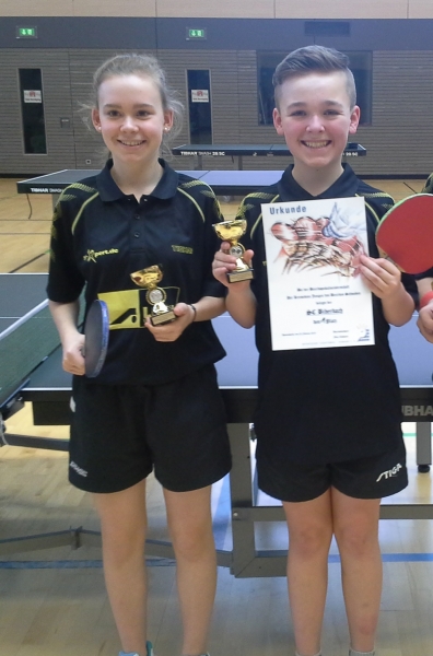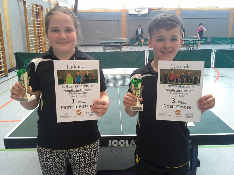 (MM) Mit einem ersten und einem dritten Platz kehrten die Biberbacher Nachwuchsasse Patrizia Pietzsch und Noah Gmoser vom Bezirksbereichsturnier in Mindelzell zurück. Patrizia, die eigentlich noch dem jüngeren Schülerjahrgang angehört, ließ auch der älteren Konkurrenz keine Chance und siegte ohne Satzverlust. Für Noah war der Weg aufs Podest deutlich schwieriger: In einem stark besetzten Feld musste er gleich zu Beginn eine knappe 2:3-Niederlage hinnehmen. Da aber nur noch eine weitere Niederlage gegen den späteren Sieger hinzukam, reichte es am Ende hauchdünn für Rang drei. Beide sind damit für das schwäbische Ranglistenturnier Ende Mai in Biberbach qualifiziert.