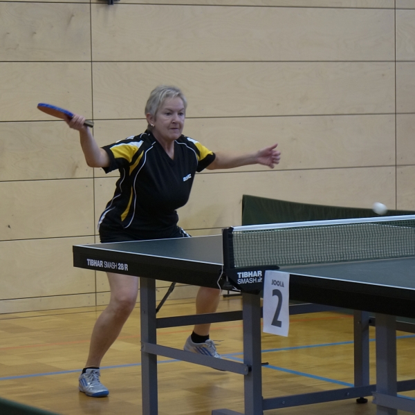 (MK) Toller Erfolg für die Biberbacherin Karin Kahl bei den 11. Internationalen Bayerischen Tischtennis Senioren-Meisterschaften in Ruhpolding: Nach einer beinahe makellosen Vorrundengruppe mit nur einem abgegebenen Satz qualifizierte sie sich für die KO-Runde in der Altersklasse 65. Dort traf sie nach dem gewonnenen Halbfinale gegen Ellen Stöckel vom TTC Berlin Neukölln auf Jutta Sommer von der TSG 1845 Heilbronn. Auch dort gab sie nur einen Satz ab und sicherte sich so den Sieg in dieser Konkurrenz. Ebenfalls erfolgreich war Karin im Mixed zusammen mit Frank Schmitt (TTSG Sörgenloch-Zornheim), wo sie in der Altersklasse 60 Platz drei belegte.