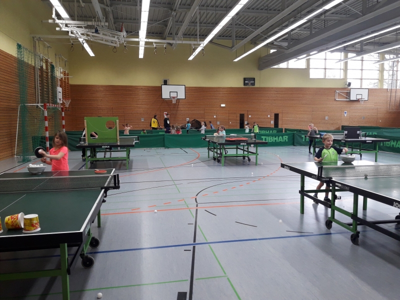 Am vierten Schnuppertraining konnten die kleinen Nachwuchsspieler und -spielerinnen ihre in den vorherigen drei Trainings erworbenen Spielerfahrungen unter Beweis stellen. Aus Übungsphase wurde Wettkampf. Die Kleinen konnten in vier verschiedenen Aufgaben, mit verschiedenen Schwierigkeitsgraden, Punkte sammeln. Egal ob den Ball werfen und fangen, mit dem Ball in der flachen Hand einen Parcour durchqueren, mithilfe des Schlägers die kleinen weißen Bälle in die Box treffen oder mit einem richtigen Aufschlag den Becherturm auf der anderen Seite vom Tisch fegen. Die Mädchen und Jungen erreichten viele Punkte und hatten viel Spaß am anfänglichen Tischtennisspiel. Für ihre tollen Ergebnisse wurden sie von ihren Trainern Marie und Max natürlich mit einer süßen Kleinigkeit, Urkunden und die Top drei mit Medaillen, belohnt. Wir freuen uns auf das Anfängertraining im neuen Jahr mit Euch!