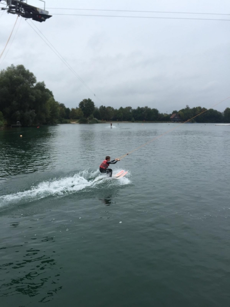 Dieses Jahr machten wir wieder einen Ausflug zum Wasserskifahren an den Friedberger Baggersee. Obwohl es die letzten Woche super schönes Wetter war, hatten wir an diesem Tag Pech und musst uns bei 15°C in den Neoprenanzug zwängen. Aber das Wasser war warm und durch die viele Bewegung merkte man die Kälte kaum. Alle hätten eine Menge Spaß und könnten den Luft fast ohne Pausen nutzen. Am Ende wagten sich sogar ein paar Vereinzelte auf das Wakeboard.