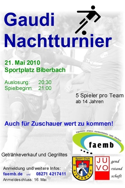 Wann das nächste Gaudi-Nachtturnier stattfindet wird immer zeitnah auf unsere Homepage oder bei FAEMB bekannt gegeben.