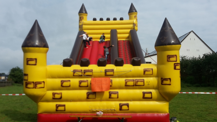 Um für Spiel und Spaß unserer Kleinsten zu sorgen, stellen wir immer eine Hüpfburg auf, die kostenlos benutzt werden darf. Besonders bei schönen Wetter erfreut sie sich großer Beliebtheit und bietet auch noch größeren "Kindern" viel Spaß.